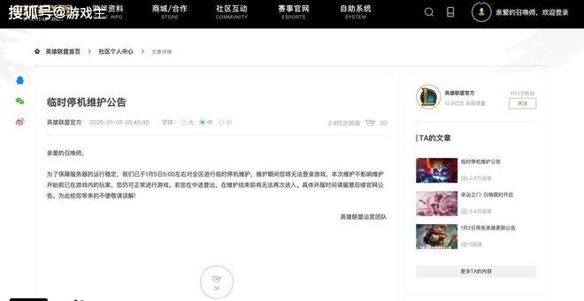 2026-01-06英雄联盟赛事官网,英雄联盟官方网站,英雄联盟投注网站大家好,S16赛季的比赛马上就要开始了,相信绝大多数的玩家都关注了最近一段时间的休赛期。德玛西亚杯的比赛结束之后,lpl赛区的各大战队迎来了最后的调整,粉丝们也是这几天能够好好休息一下了。结果,一些网友在凌晨进行游戏的时候,发现客户端突然维护了,掉线之后无法重连,官方并没有发任何维护的公告,直到将近6点的时候才发出来。游戏崩溃迅速登上热搜。根据大量网友的探索发现,原来是拳头的游戏证书到期了,十年时间,真的是弹指一挥间。