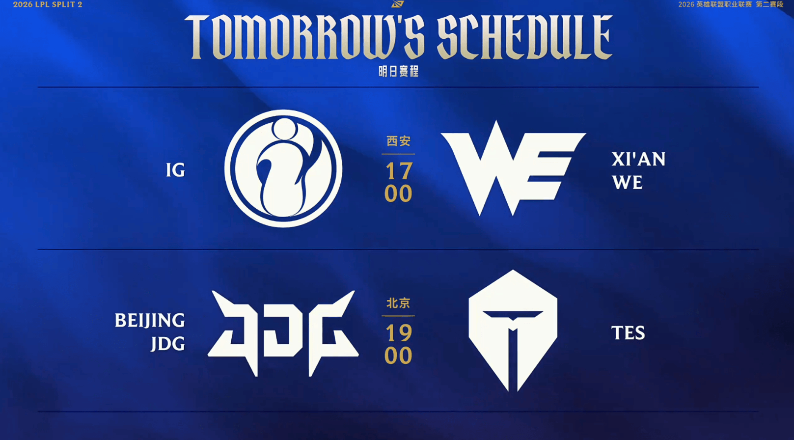 英雄联盟赛事官网,英雄联盟官方网站,英雄联盟投注网站北京时间2026年4月11日,英雄联盟LPL第二赛段将在这一天分别迎来iG对阵WE、JDG对阵TES这两场比赛。那么,这两场比赛都有哪些看点呢?就让我们一起来了解一下吧!