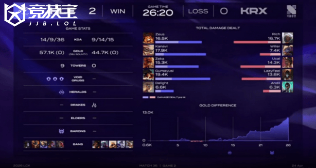 2026-04-26英雄联盟赛事官网,英雄联盟官方网站,英雄联盟投注网站2026年LCK常规赛继续进行,今日第二场由HLE对阵KRX。整体实力占优的HLE延续火热状态,以2-0轻松击败KRX,豪取六连胜,目前以7胜1负高居联赛第二。