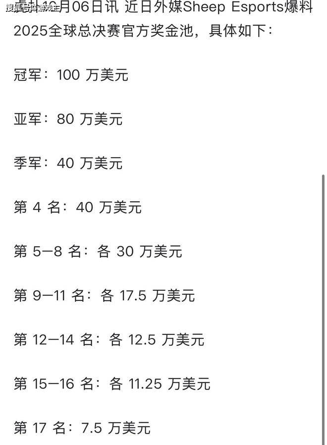 2025-10-08英雄联盟赛事官网,英雄联盟官方网站,英雄联盟投注网站大家好,S15赛季的比赛已经正式开始了,相信绝大多数的玩家都关注了最近一段时间的对抗,各大赛区都进入到了一小段时间的休赛期,一些战队参与到了娱乐对抗,也有一些战队在准备着最终的世界总决赛。这几年里,联盟的热度成为了很多玩家关注的焦点,大家都觉得英雄联盟已经走下坡路了,甚至,很多人都离开了游戏,但是从这一次的世界总决赛奖池来看,联盟的投资可能会越来越多,就在最近,官方也是正式公布了S15全球总决赛的奖金分配,第一名竟然有100万美金,相较于S14直接翻倍,17强则只有7.5万,如果不是本土战队的话,估计连团队机票食宿都不够吧。