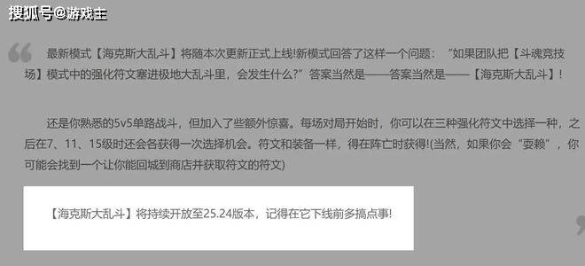 玩过这个模式的玩家应该都是好评,全新符文的加入,确实能够让网友有全新的体验,比如几万血的纯肉英雄,移动速度几千上万的AD英雄,还有那种高出天际的大虫子。感觉许多官方都没有想到的玩法,已经被网友们研发出来了。本以为这个模式会成为官方的常驻,毕竟现在人气热度这么高,如果一直存在的话,肯定能够提升联盟的热度,但在之前的官方公告中,海克斯大乱斗的模式将会持续开放到25.24版本,甚至后面还加了一句,记得在它下线前多搞点事。