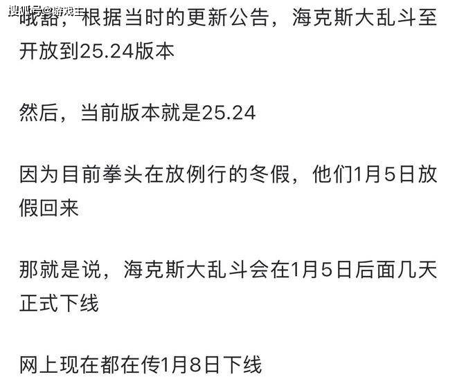 现在还没有最终的盖棺定论,所有下线的消息都是根据之前官方的公告,网友们推测的。当然,大概率也是在那个时候删除,所以现在趁着还有机会,大家赶紧去多玩几局心仪的英雄。就算下线,肯定也有回归的时候,就是不知道何年何月了。返回搜狐,查看更多